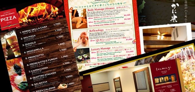 名刺などの小さなものからチラシ、ポスター、のぼりなどの各種販促物、